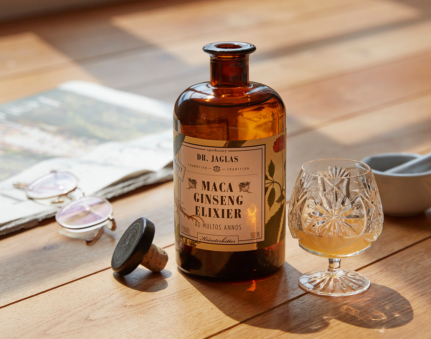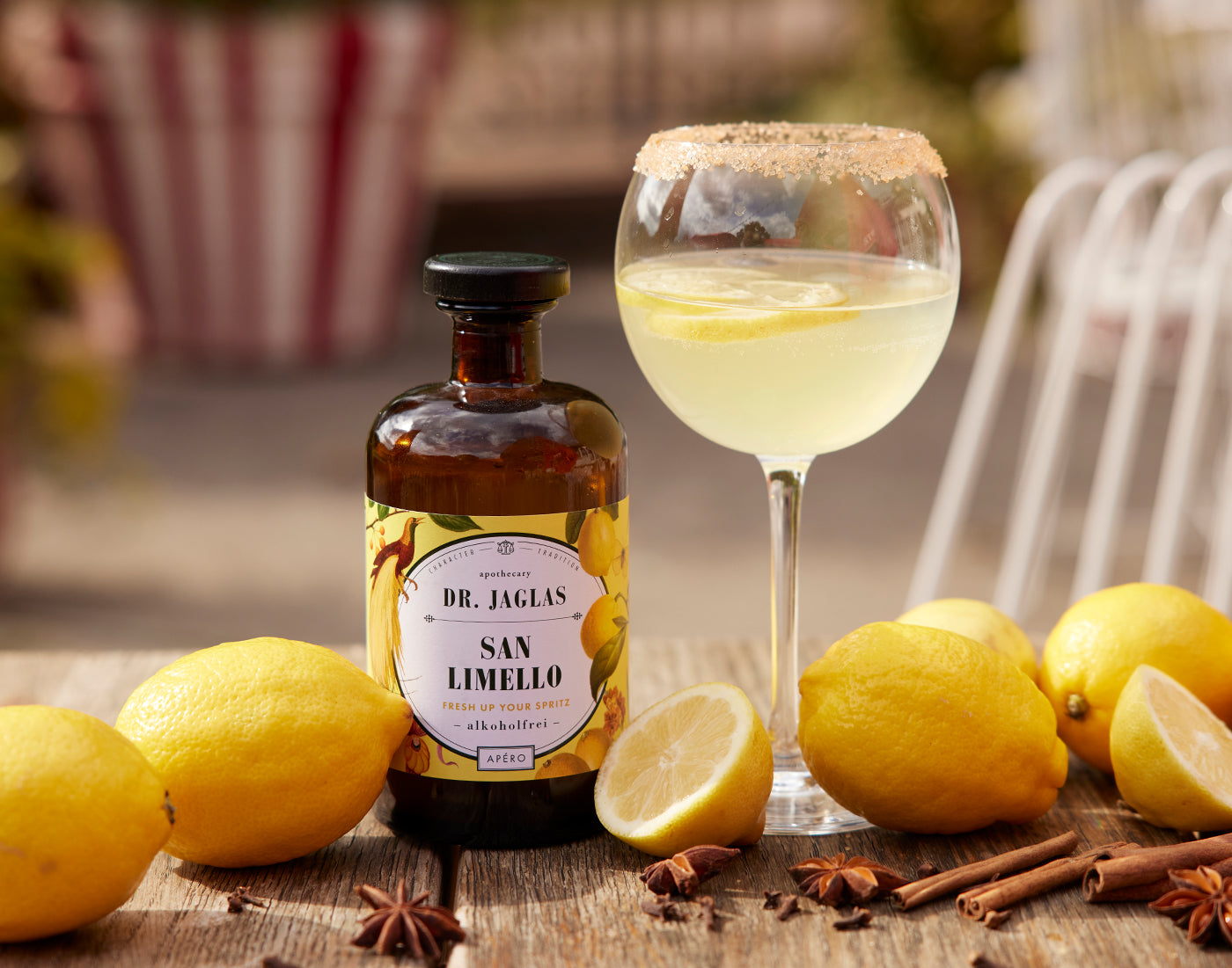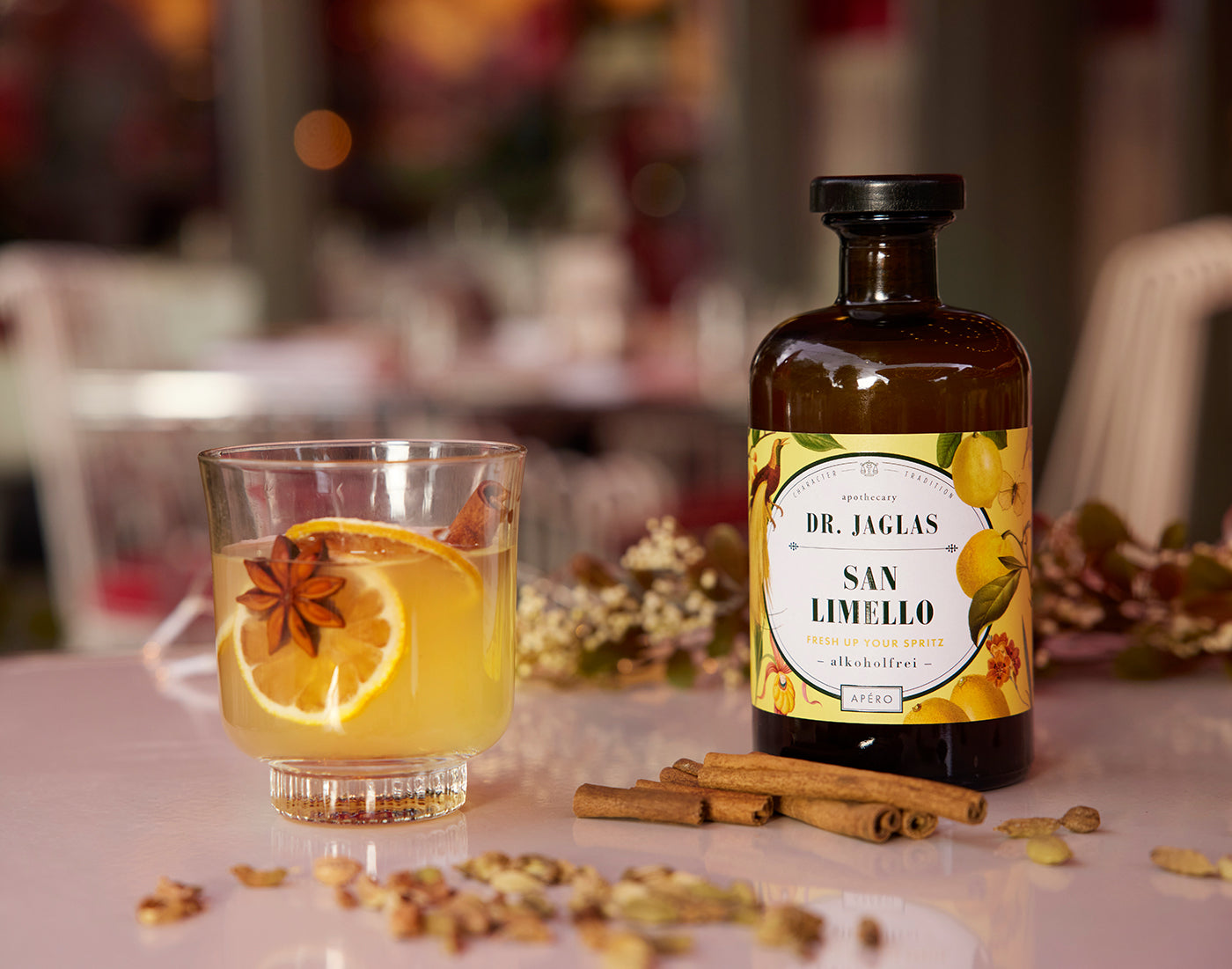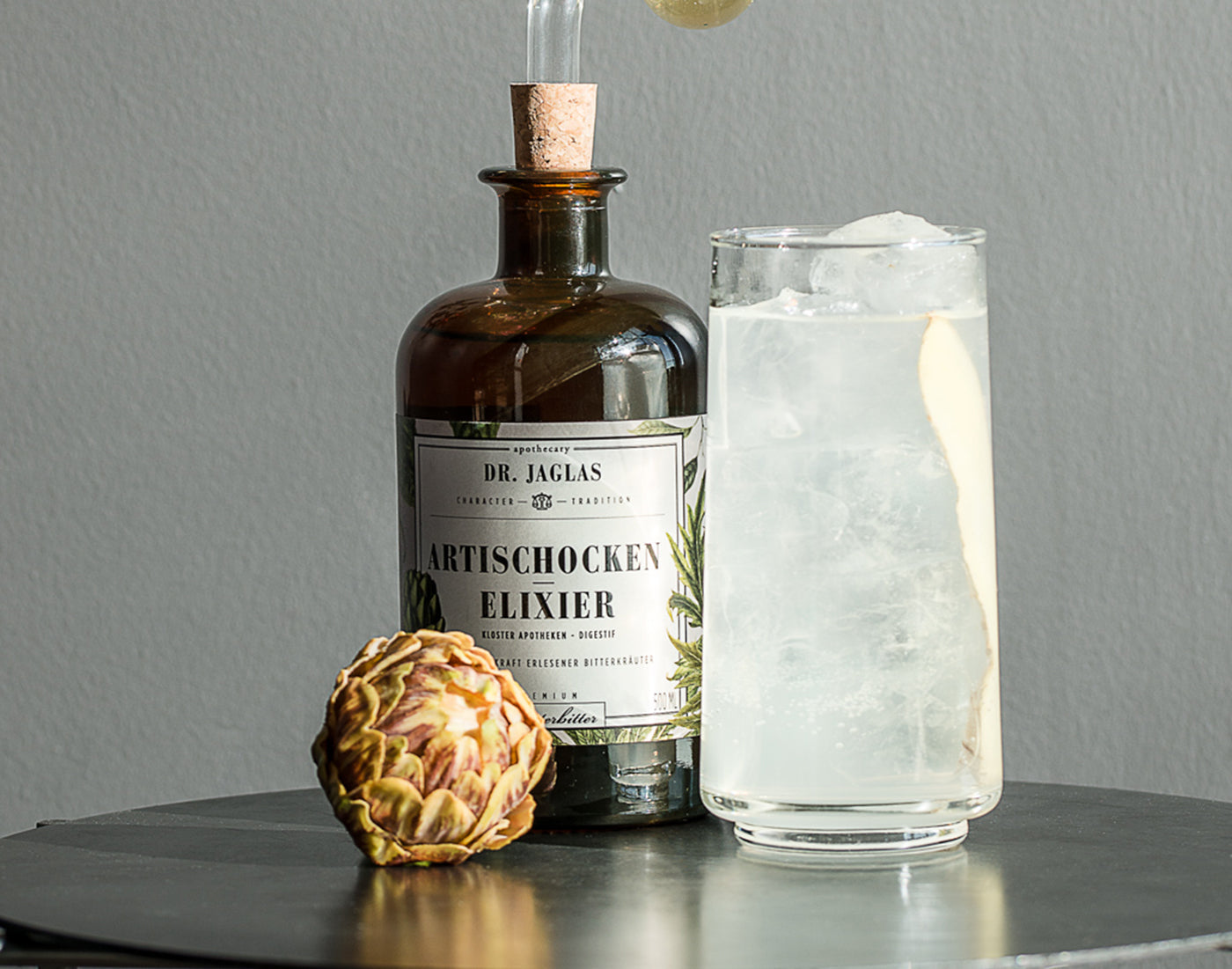 Ein erfrischender "Dr. Jaglas Spritz" ist die ideale Wahl, um die reichen Nuancen von Artischocken-, Ginseng- oder Maca-Elixier zu entdecken..