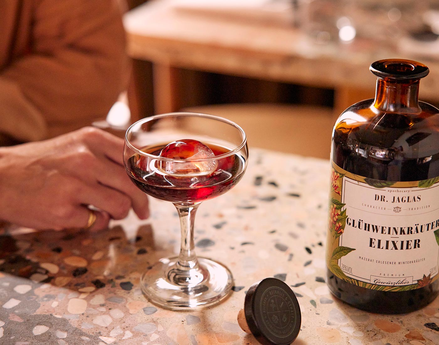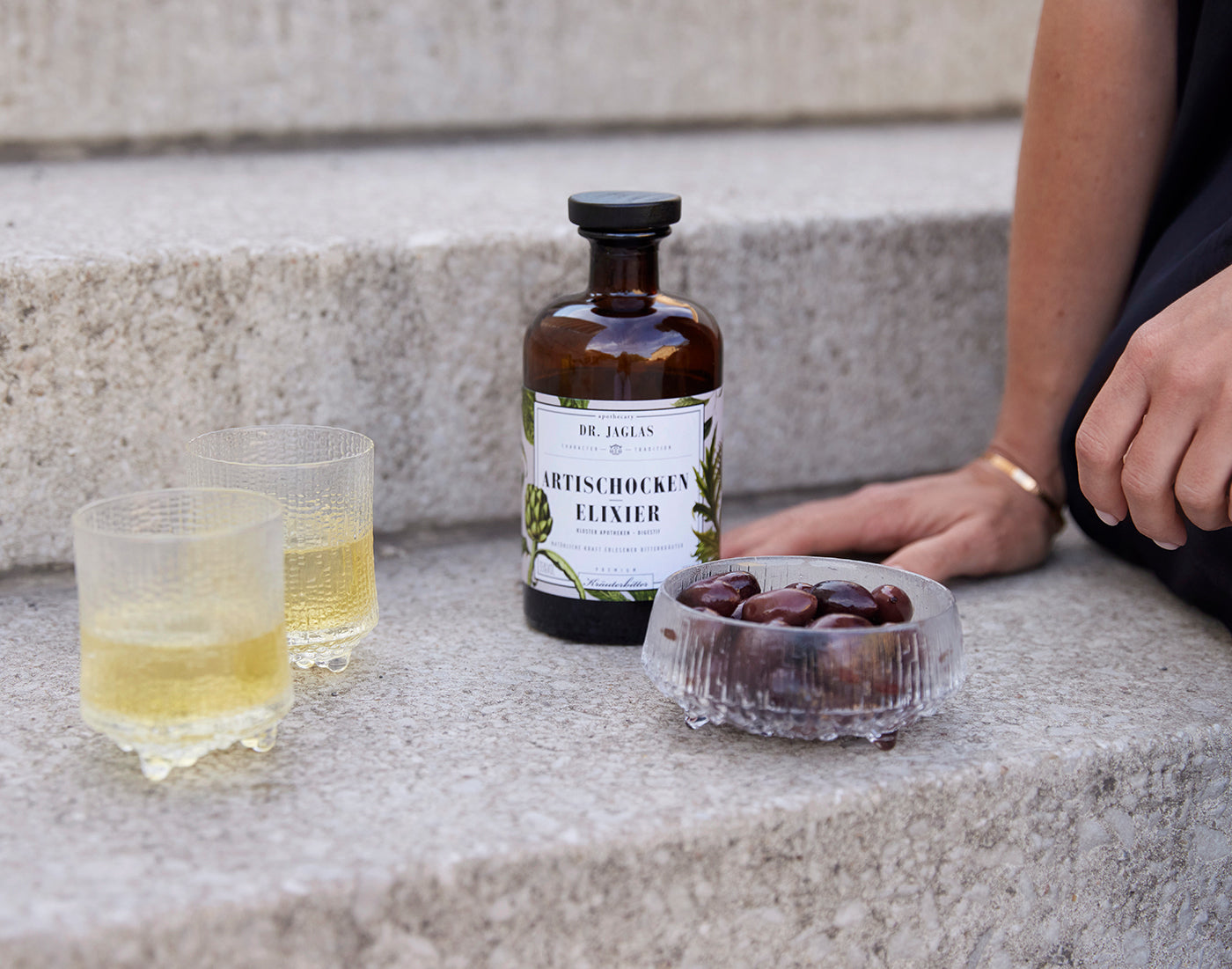 Ein erfrischender "Elixier on the rocks" ist eine einfache und dennoch elegante Wahl, um die vielschichtigen Aromen von Artischocken-, Ginseng-..